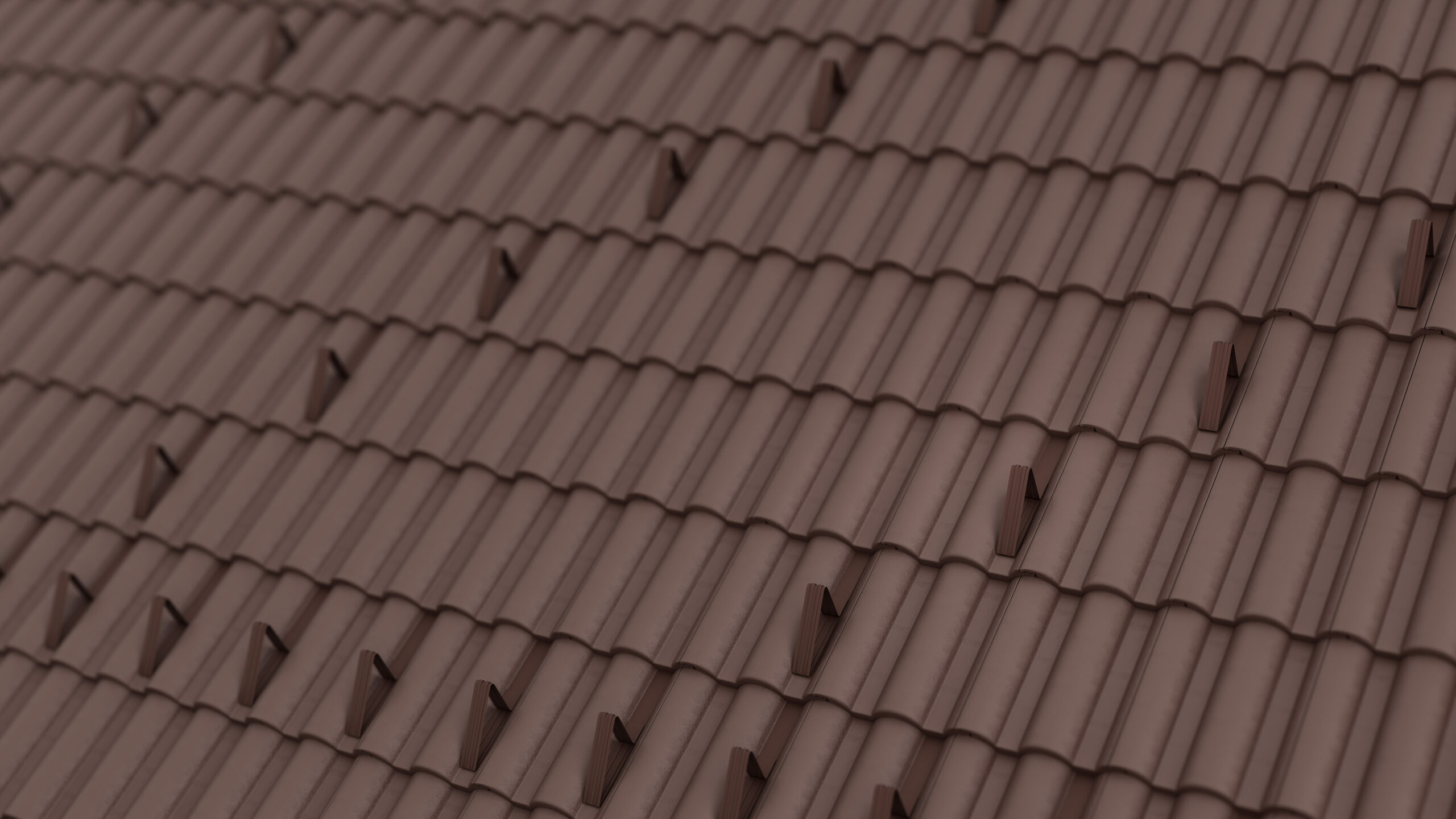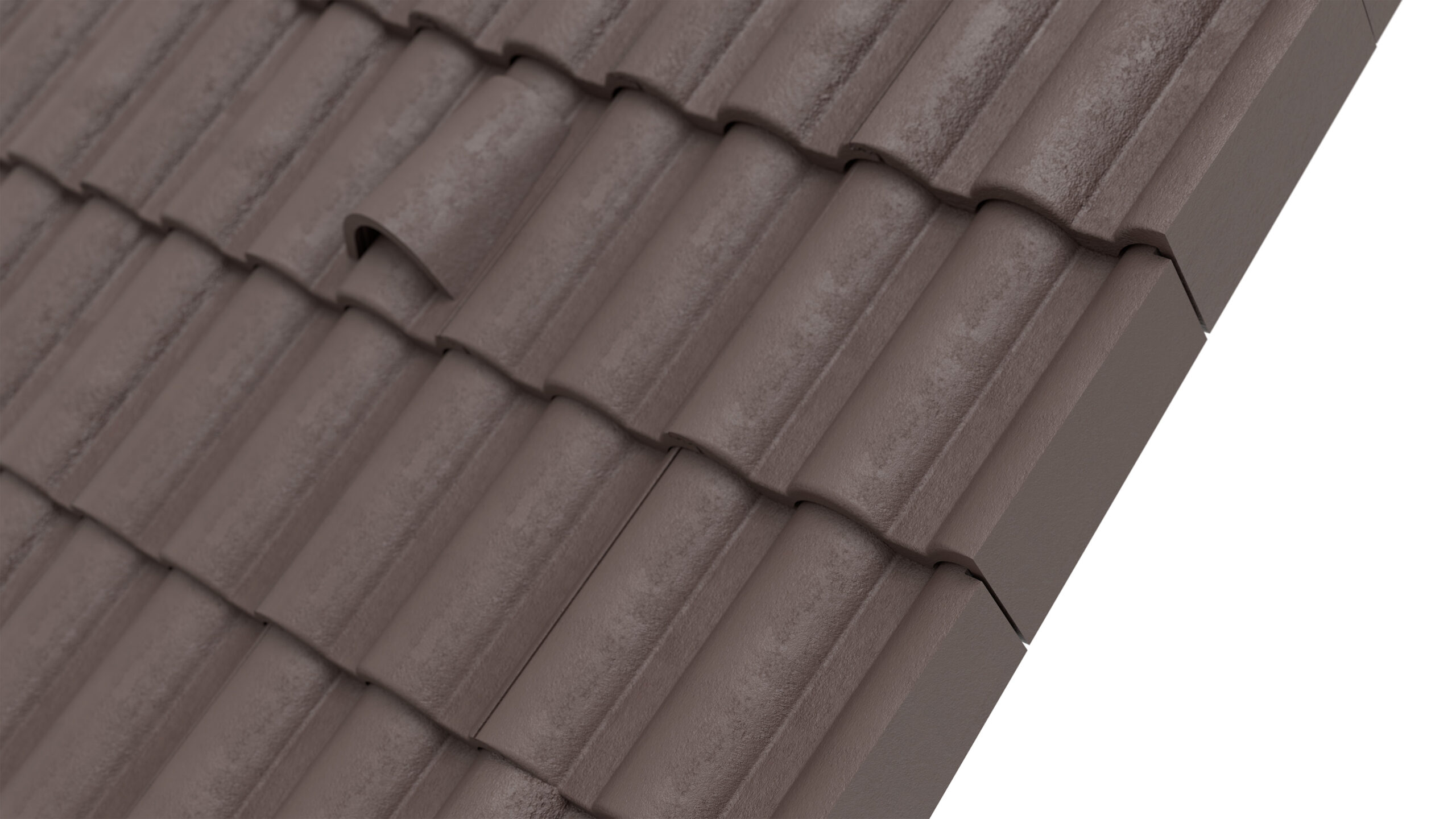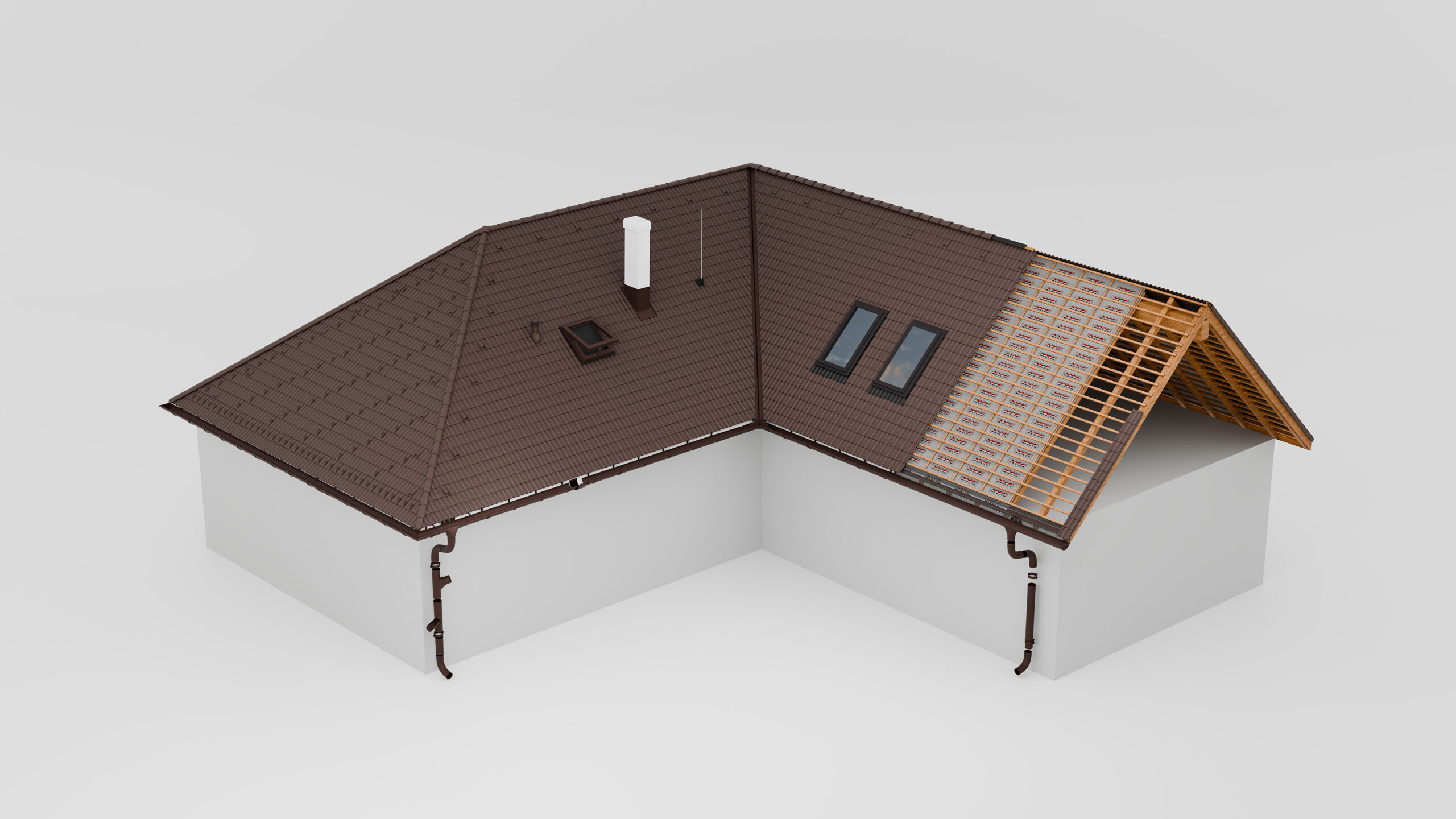 A high-quality 3D animation showcasing a complete roofing system, designed for marketing and product presentation.